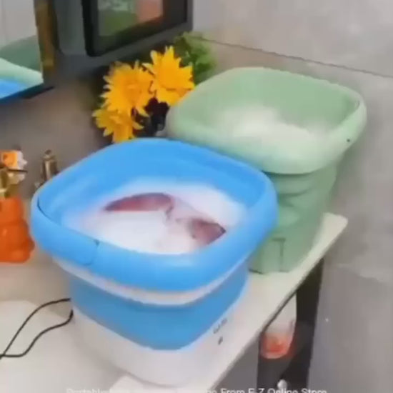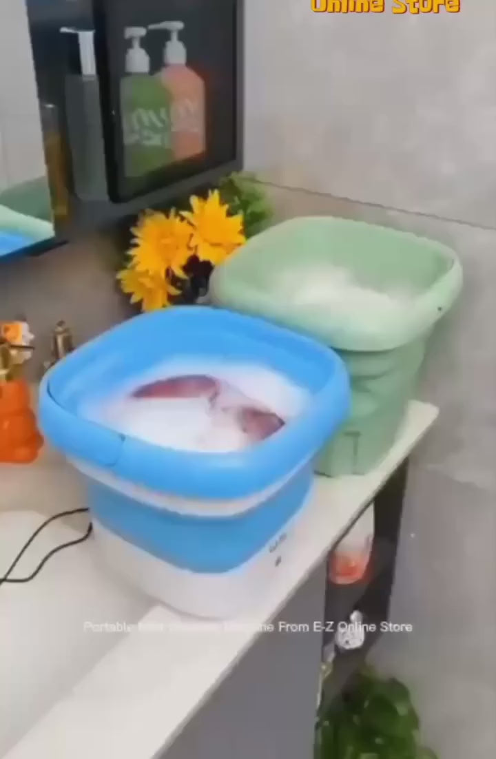Foldable Mini Washing Machine – A compact, collapsible washer designed for small clothes like underwear, socks, and baby garments, perfect for travel, dorms, and limited spaces.